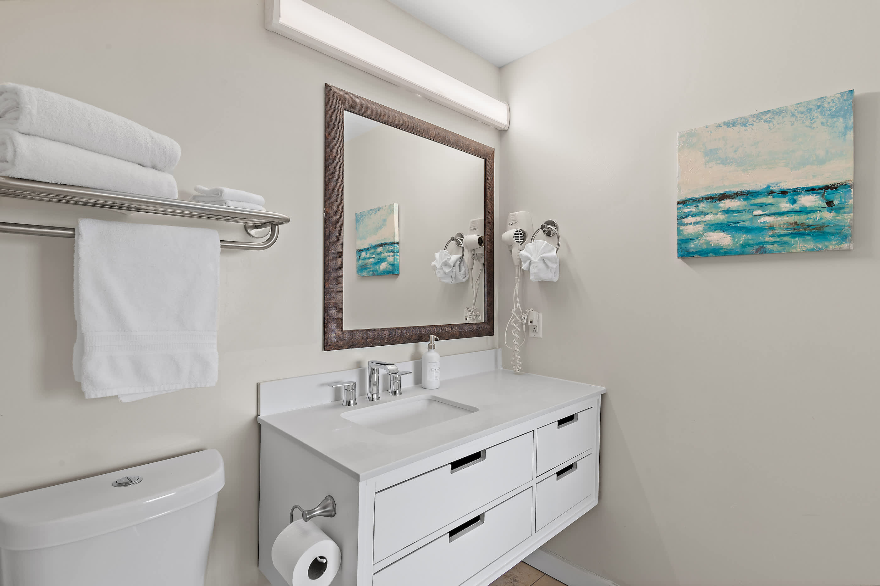 - Living Room: Sleeper sofa for additional guests
