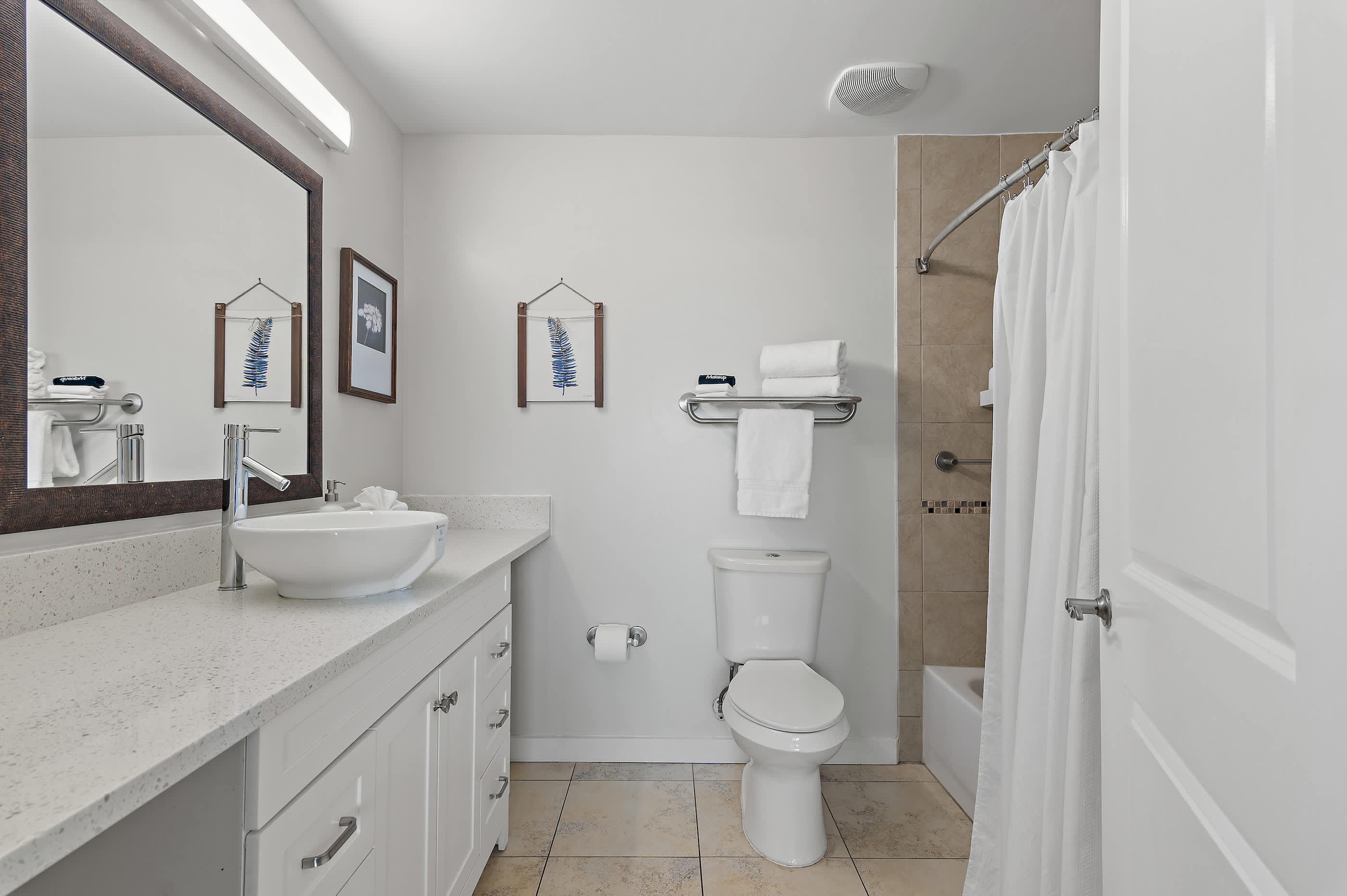 - Guest Bedroom 2: Queen bed, walk-in closet, en-suite bathroom